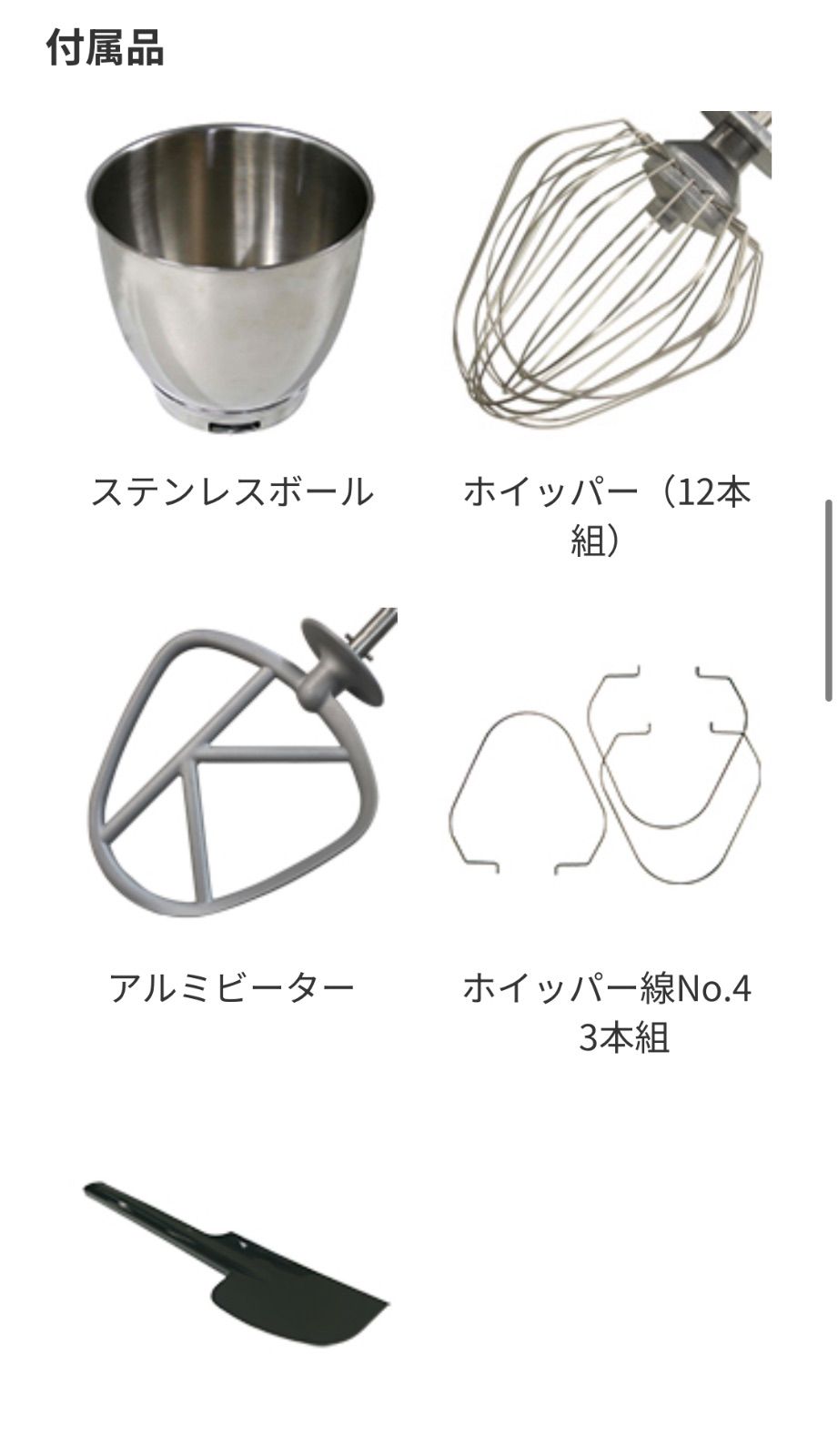 付属品:ステンレスボール、スパテラ、アルミビーター、ホイッパー、ホイッパー線No.4 3本組