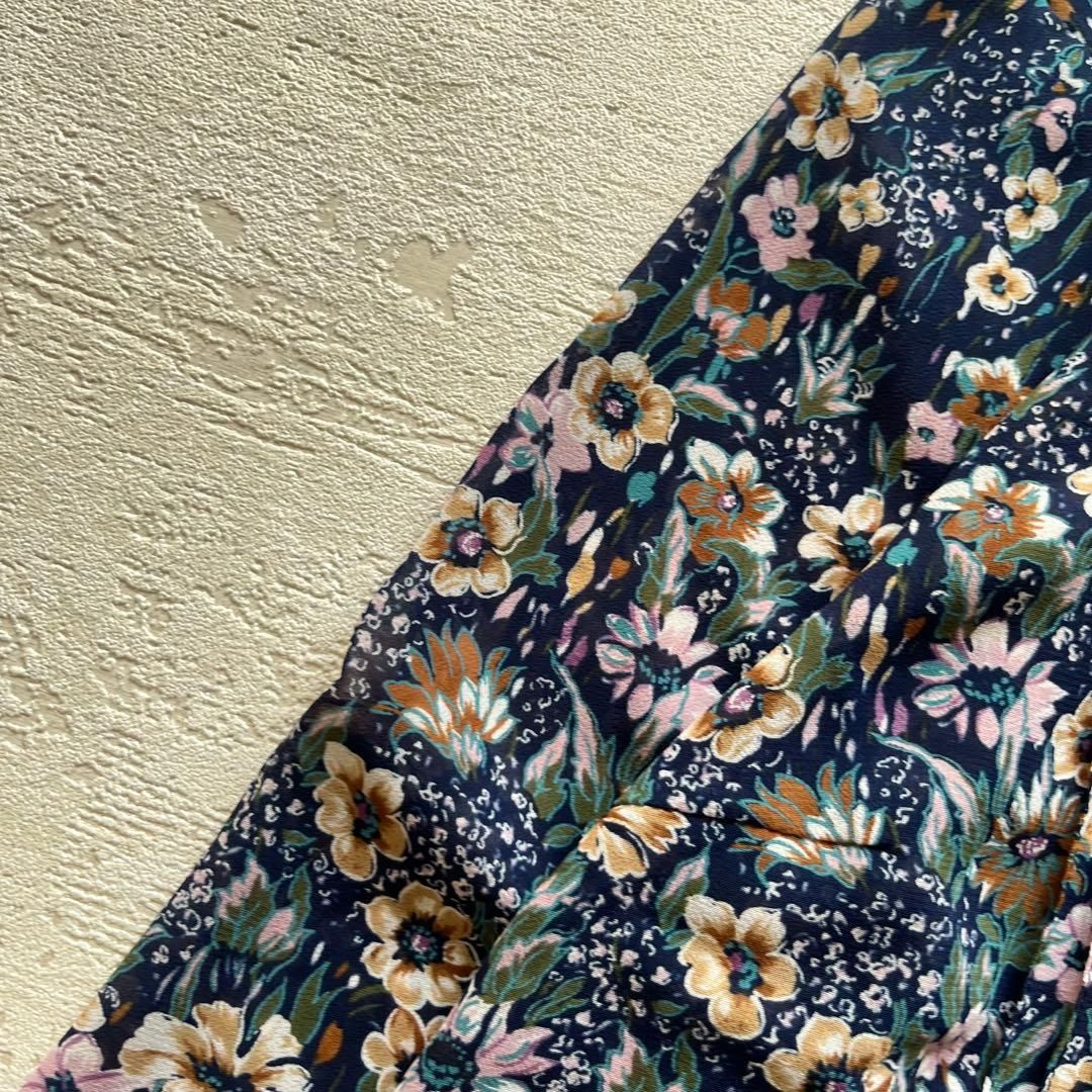 昭和レトロ花柄長袖ロングワンピースセットアップ透け素材ネイビーaf
