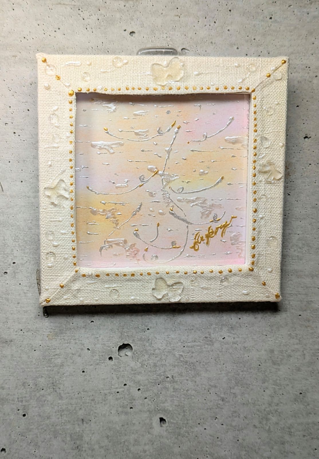 素材:ケント紙・アクリル絵具・布・布用絵具・レジン