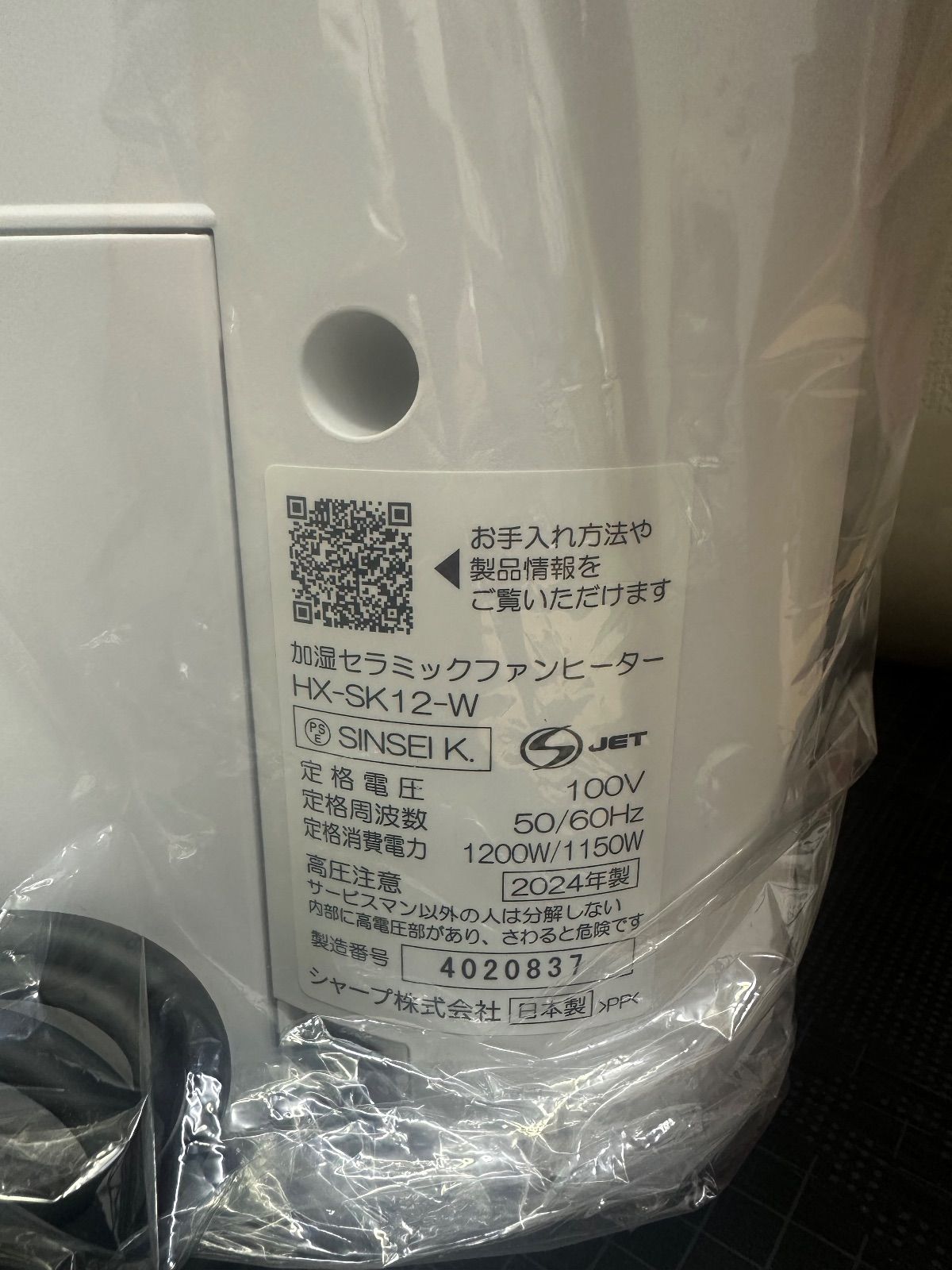 【未使用】シャープ プラズマクラスター 加湿セラミックファンヒーター HX-SK12-W(ホワイト系/プレミアムホワイト)
