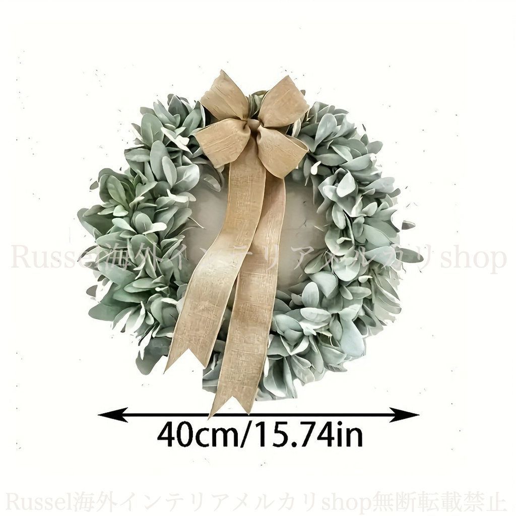 こちらは、優雅で美しいデザインの「ユーカリのリース 」です。このアイテムは、あなたの玄関やガーデンを華やかに演出することができるリースです。心地よい風合いと温もりを感じさせる仕上がりが特徴です。