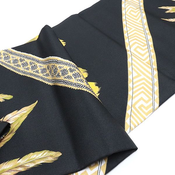 エルメス HERMES ロングマキシツイリー ブラジル シルク100% 黒系 17355