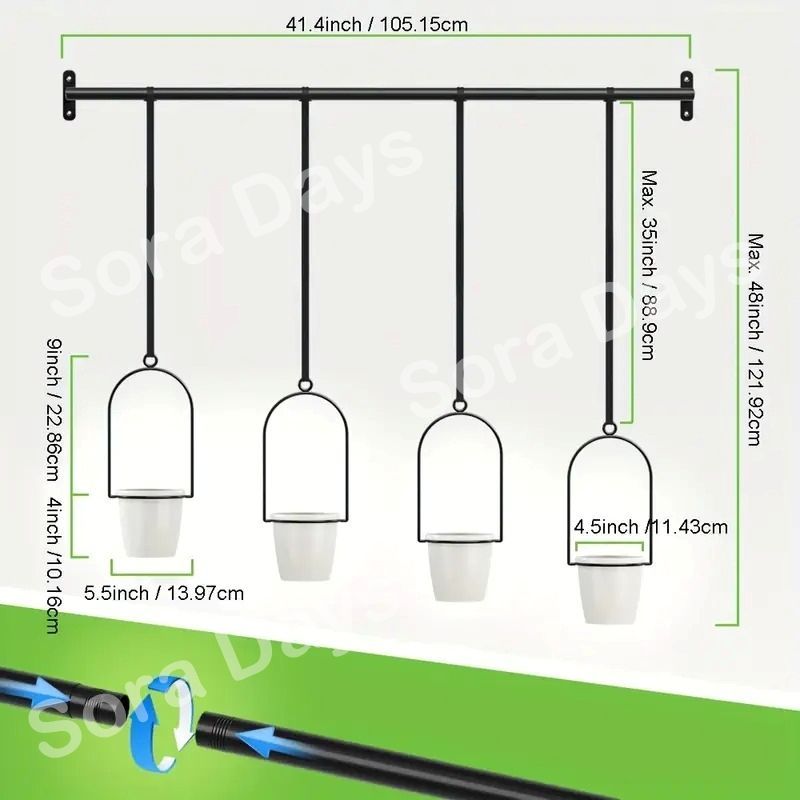 プランター 鉢 植木鉢 フラワーポット 吊り下げ ガーデニング 4点セット おしゃれ かわいい インテリア 北欧 金属製 植物 花 屋外 庭 ガーデン 室内 窓 壁面 高さ調節可 ハンギング レイアウト自由 カフェ風 モノトーン シンプル