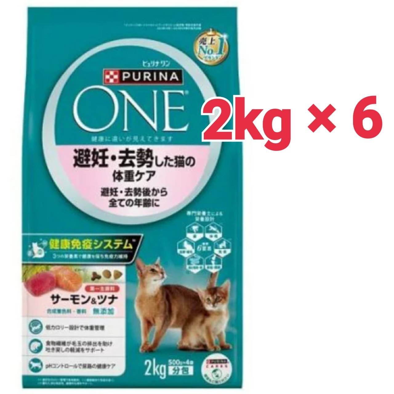 処分 ピュリナワン キャット ドライ 避妊 去勢した猫の体重ケア サーモン&ツナ2 kg×6袋セット 賞味期限2026年