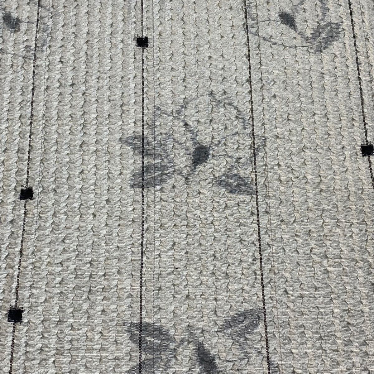 反物 秀品 小紋 紬地 草花 縞 灰色 正絹