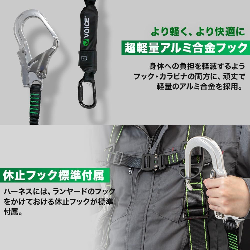 VOICE (ヴォイス) 新規格 フルハーネス 安全帯 ランヤード セット 新規格適合 墜落制止用器具 160190cm M-L兼用サイズ 第一種 第二種