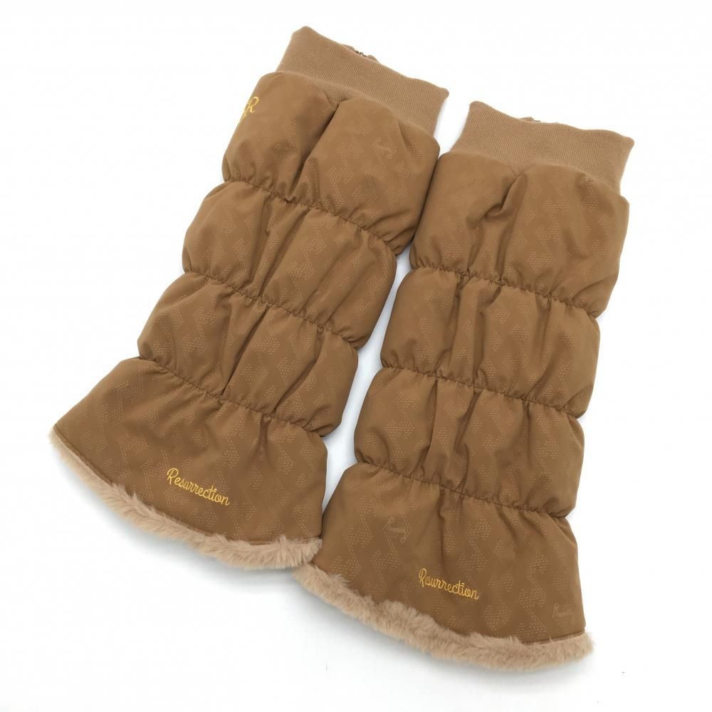 超 レザレクション レッグウォーマー ブラウン 総柄 裏地ファー ウール混 レディース フリーサイズ ゴルフウェア Resurrection