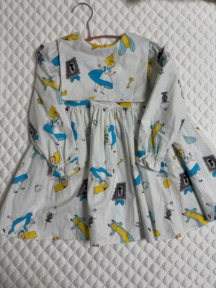 手作りのエリーゼの絵が描かれた100サイズのドレスです。白地に水玉模様が可愛らしさをプラスします。特別な日にお子様をさらに目立たせることができます。ご不明な点がなければ、すぐに安心してお支払いいただけます!
