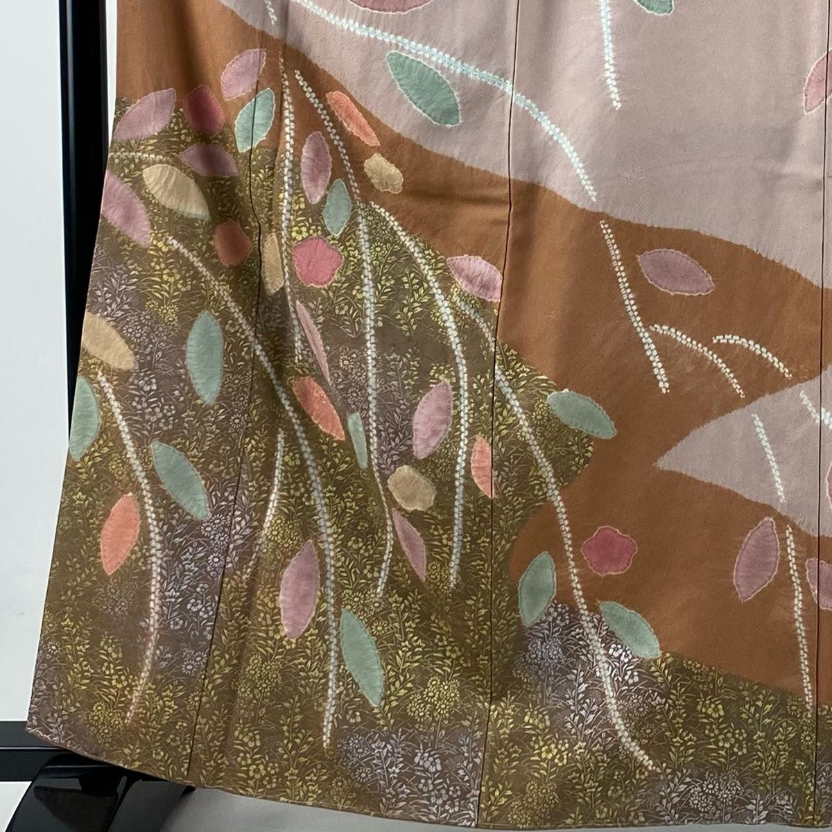 訪問着 身丈163.5 cm 裄丈66 M 袷 草花 絞り 金銀彩 赤茶 正絹 秀品