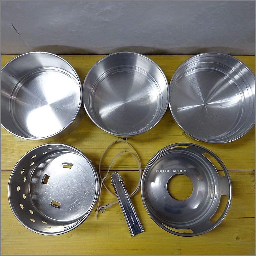 POTが2個、リッドPAN1個、風防、ゴトク、パンハンドル、ストラップがセットになった物です