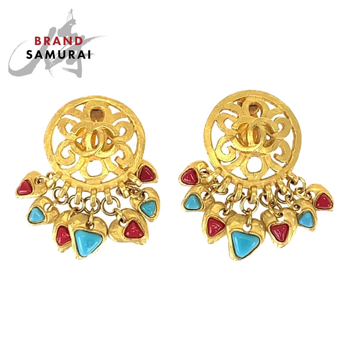 CHANEL シャネル ヴィンテージ ココマーク ストーン ゴールド レッド ブルー メッキ イヤリング スイングイヤリング 505961