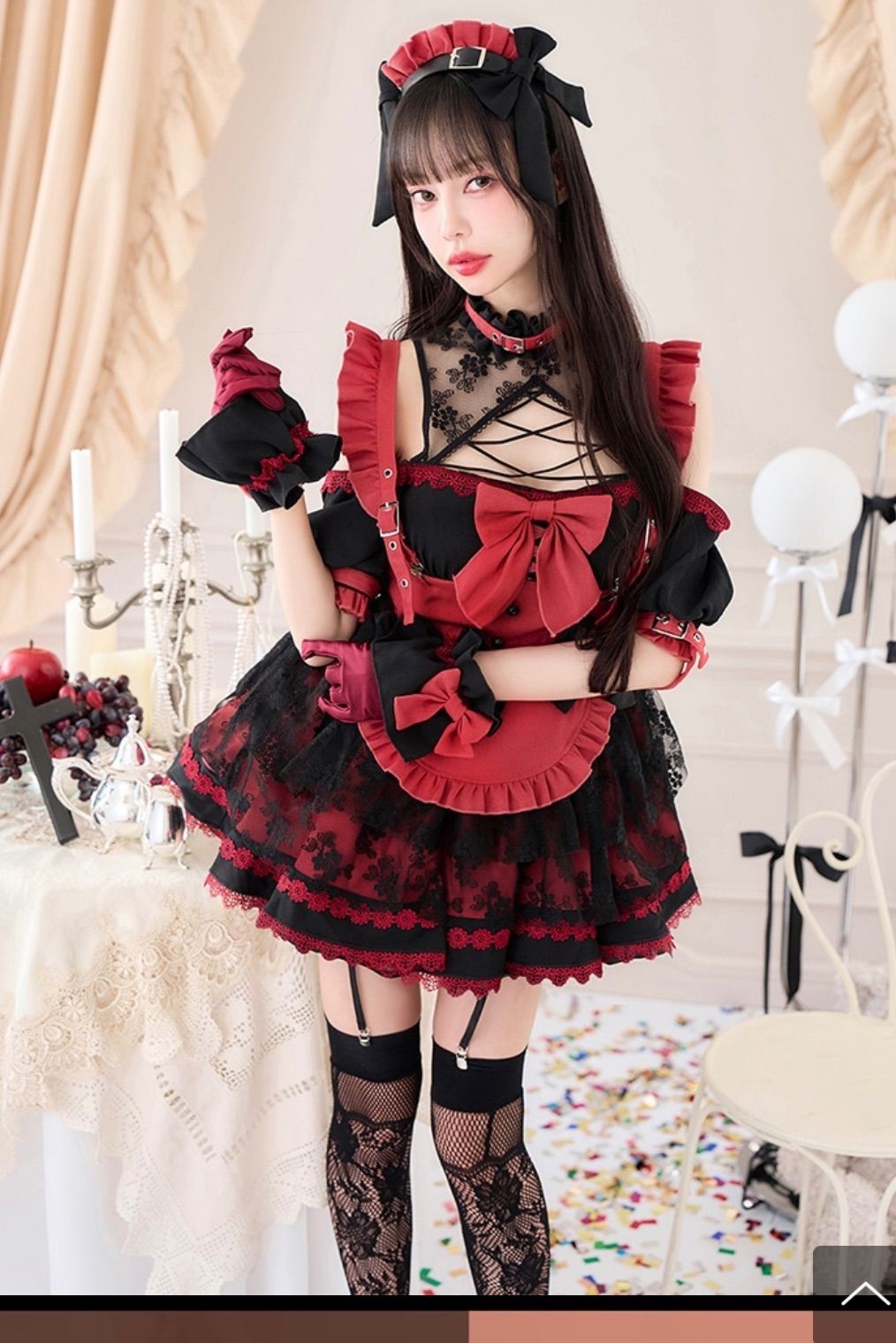 ワンピース・カチューシャ・フロントリボン・手首飾り・手袋・エプロン・バックリボン・ガーター・首飾り・ニーハイソックス