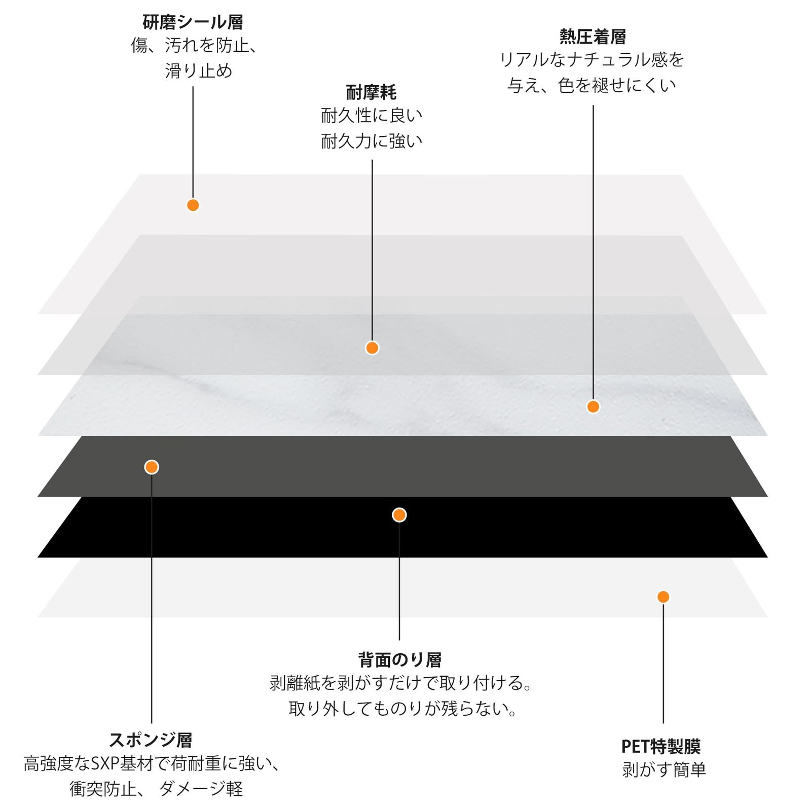 【施工簡単のフロアシート】裏面のシートをはがして貼るだけの粘着タイプで接着剤不要。初心者や女性一人でも楽に貼り付けることができます。本製品の貼り付けには専門的な道具は必要ありません。ハサミやカッターなどで、好きなサイズにカットしてお使い頂けます。※最適な接着効果を得るためには、表面が清潔、乾燥、滑らかになるように下地床を用意してください。