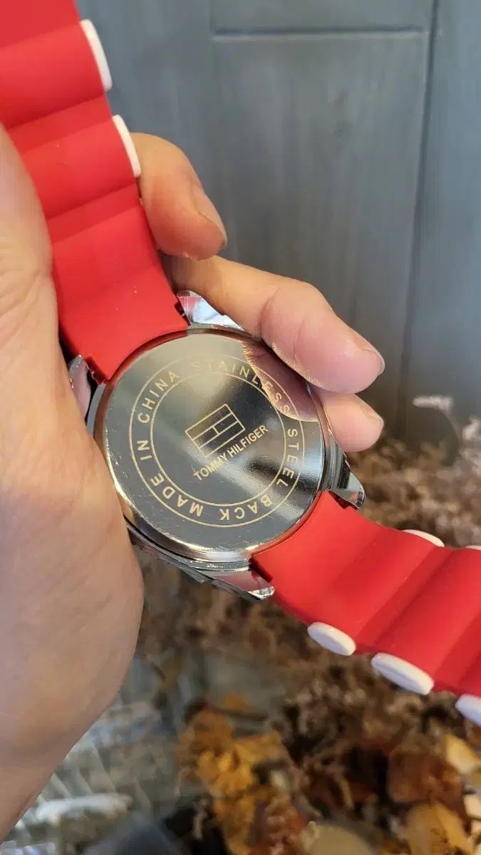 これはトミーヒルフィガーのメンズクォーツ時計です。この製品は、その強烈な赤色が際立っています。メタルバンドかと思っていましたが、ウレタンバンドですのでご注意ください!ご不明な点がなければ、すぐに安心してお支払いいただけます!