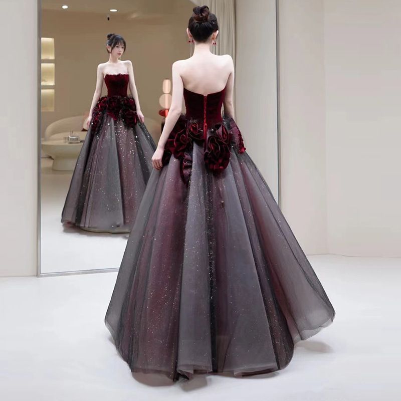 2025夏 オフショルダー チューブトップ 感 レッド レディース 結婚式 披露宴 パーティードレス