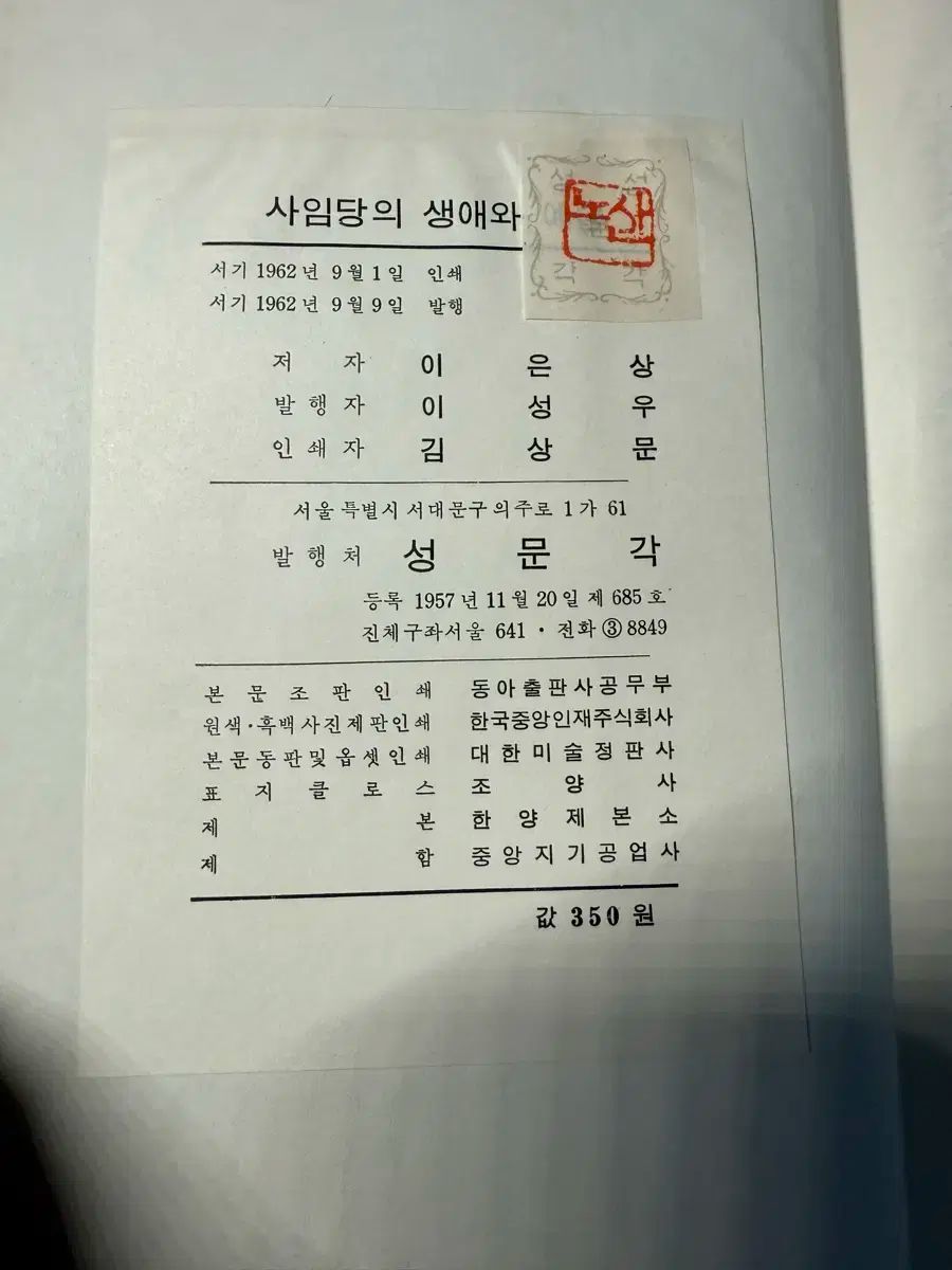 申師任堂 シンサイムダン の生涯と芸術 ノサン イ ウンサン ハードカバー版 1962年初版 チェ セギョン ONE所蔵