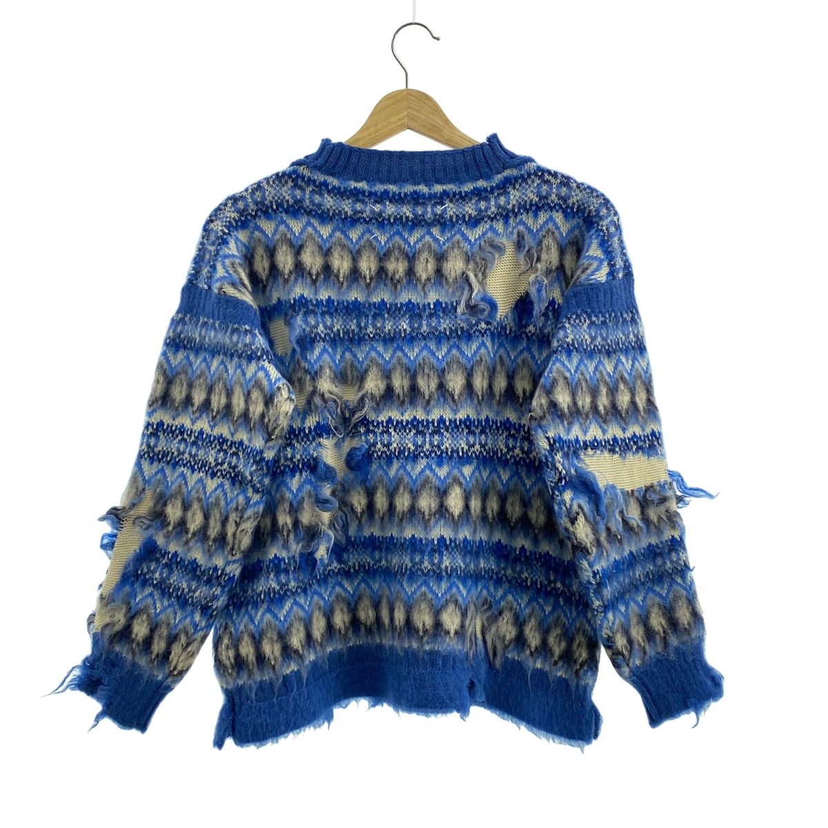 Maison Margiela メゾンマルジェラ 2025 SS INTARSIA SWEATER ダメージ加工 ニット M ブルー ホワイト ブラック レディース