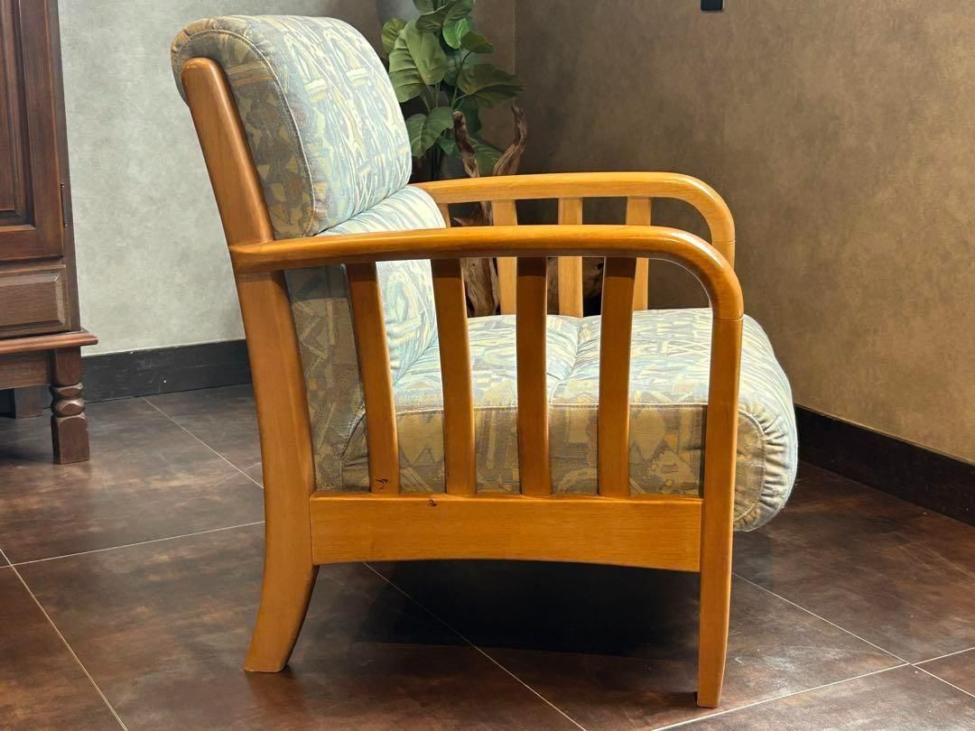 マルニ maruni アームチェア 1人掛けソファ ヴィンテージ ビンテージ 国産家具 レトロ ファブリックソファ 木製フレーム ジャパニーズモダン 幾何学模様 和モダン 北欧風 カフェスタイル リビングチェア 応接間家具 コンパクトソファ モダンインテリア