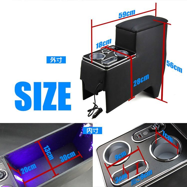 ■【収納機能】鍵やスマートフォンなどの小物を便利に収納できる実用的なスペースで、車内をより整頓された状態に保ちます。ボックスにはカップホルダーが付いており、飲み物を安全に置くことができ、運転中の利便性と快適さを向上させます。