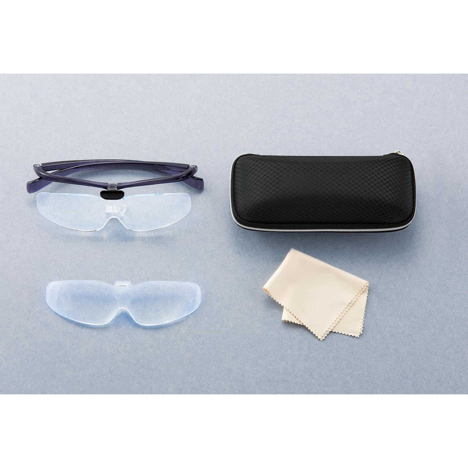 ■セット内容:フレーム(1.6倍レンズ、2.0倍レンズ)、収納ケース、メガネ拭きクロス