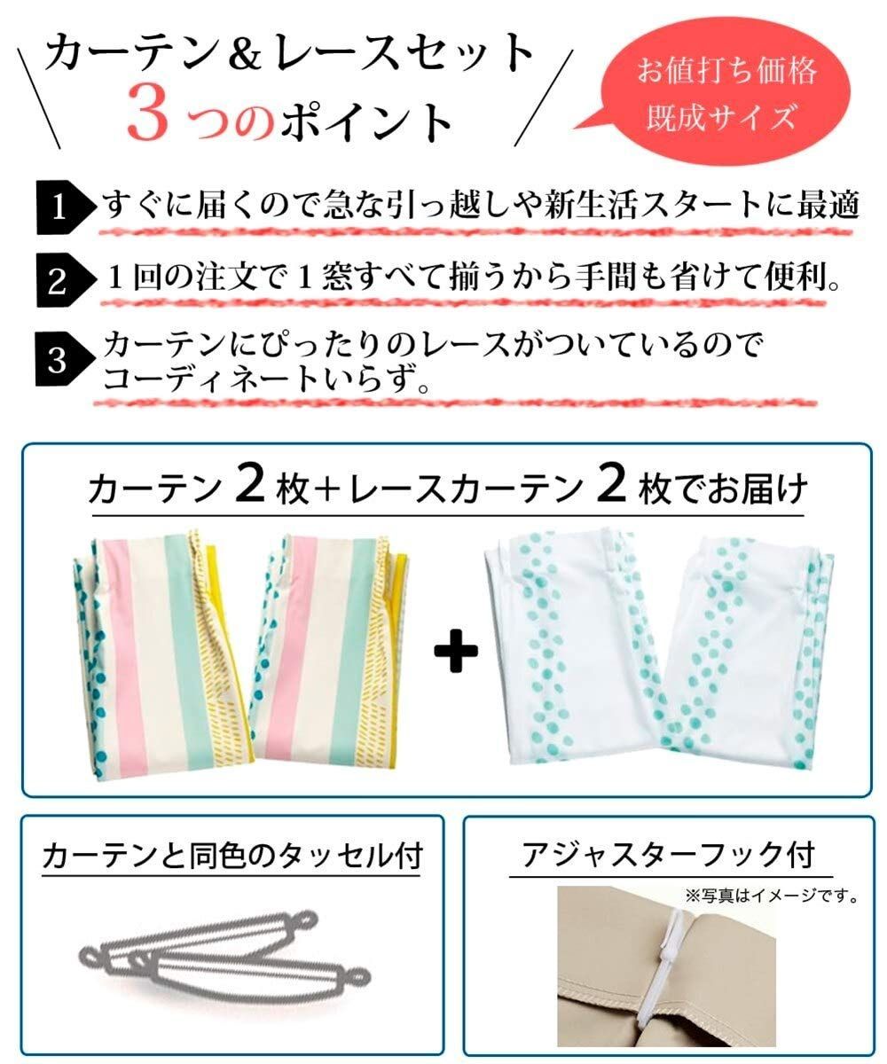 [ニッセン] カーテン ストライプ幾何柄遮熱・防音・1級遮光カーテン&遮像・UVカットレース4枚セット B=ブルー系 1=幅100×長さ110cm×4枚