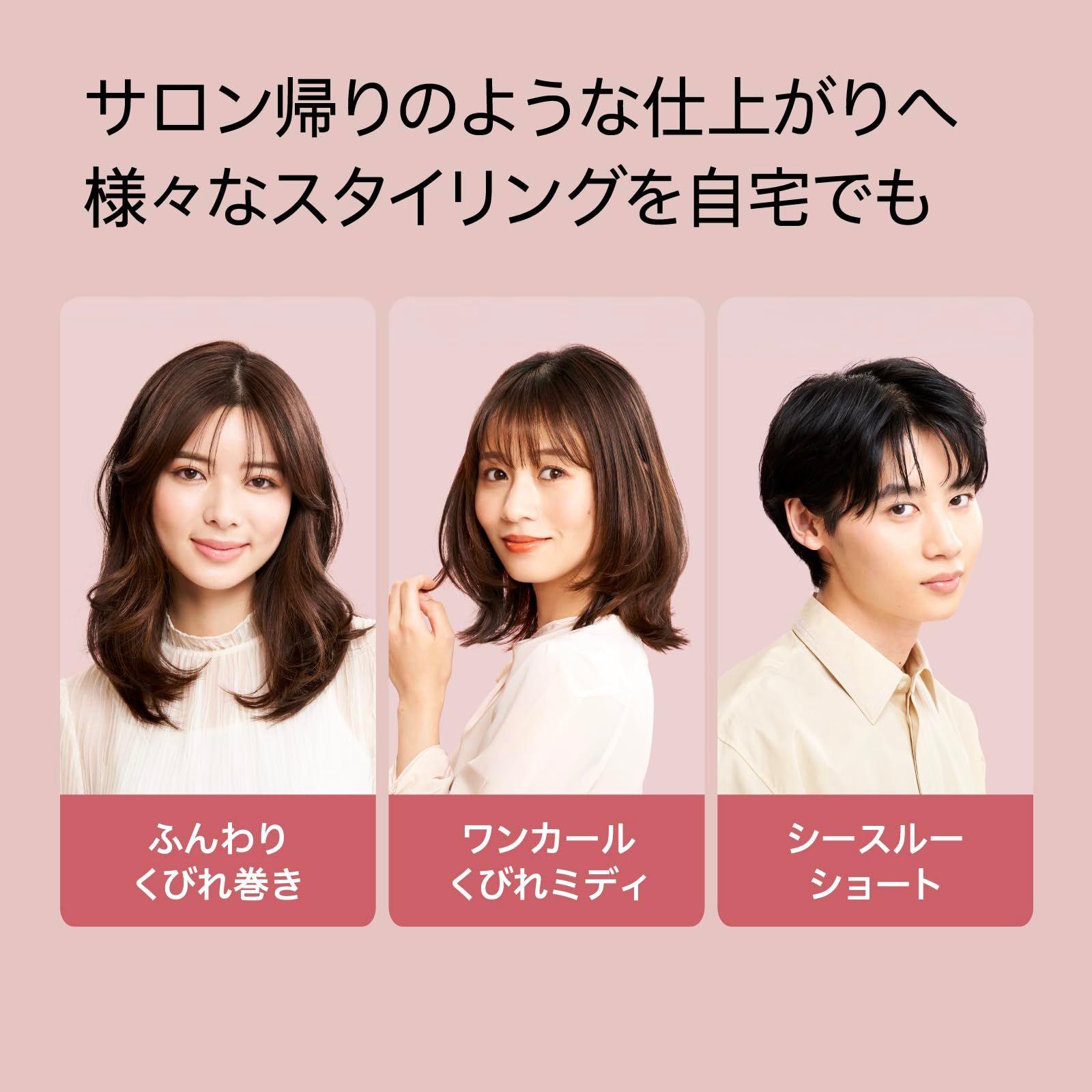 幅広いスタイルが、簡単に楽しめる。過度な熱ダメージを防ぎ、自宅でもサロンで仕上げたようなツヤめく髪を。