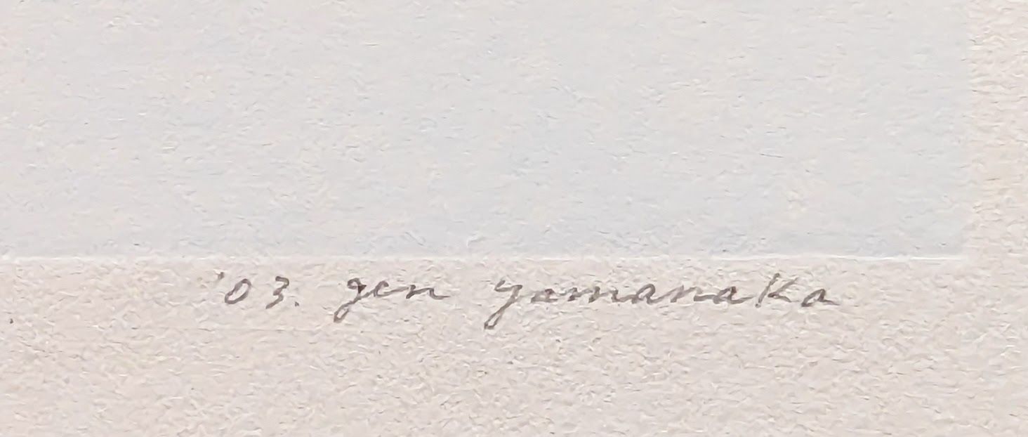 真作 直筆サイン 山中現 水の庭 木版画