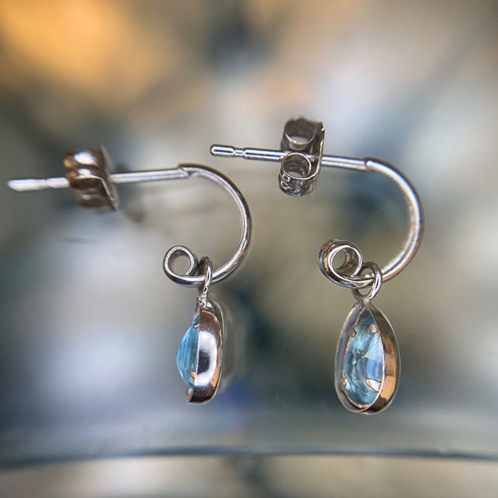 K 14 アクアマリン 涙型 フープ形 ピアス ホワイトゴールド C 2224