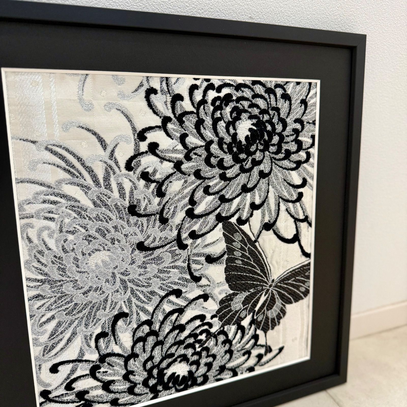京都帯屋さん フレーム入りシルク織物アート 蝶と乱菊