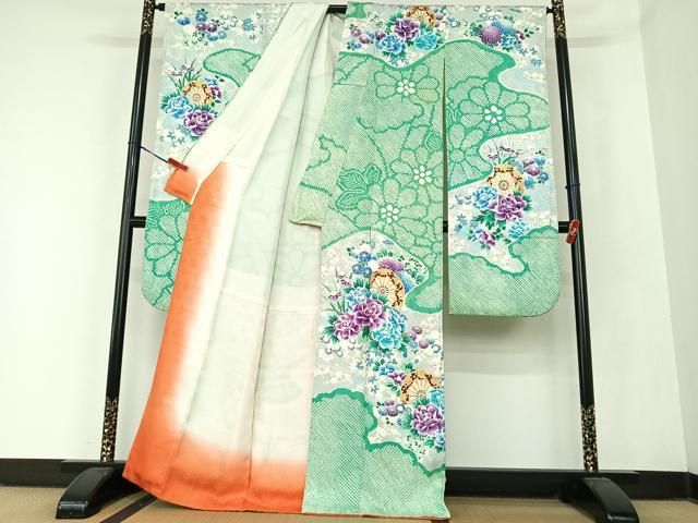 平和屋着物 豪華振袖 絞り 源氏車花文 金彩 正絹 zg