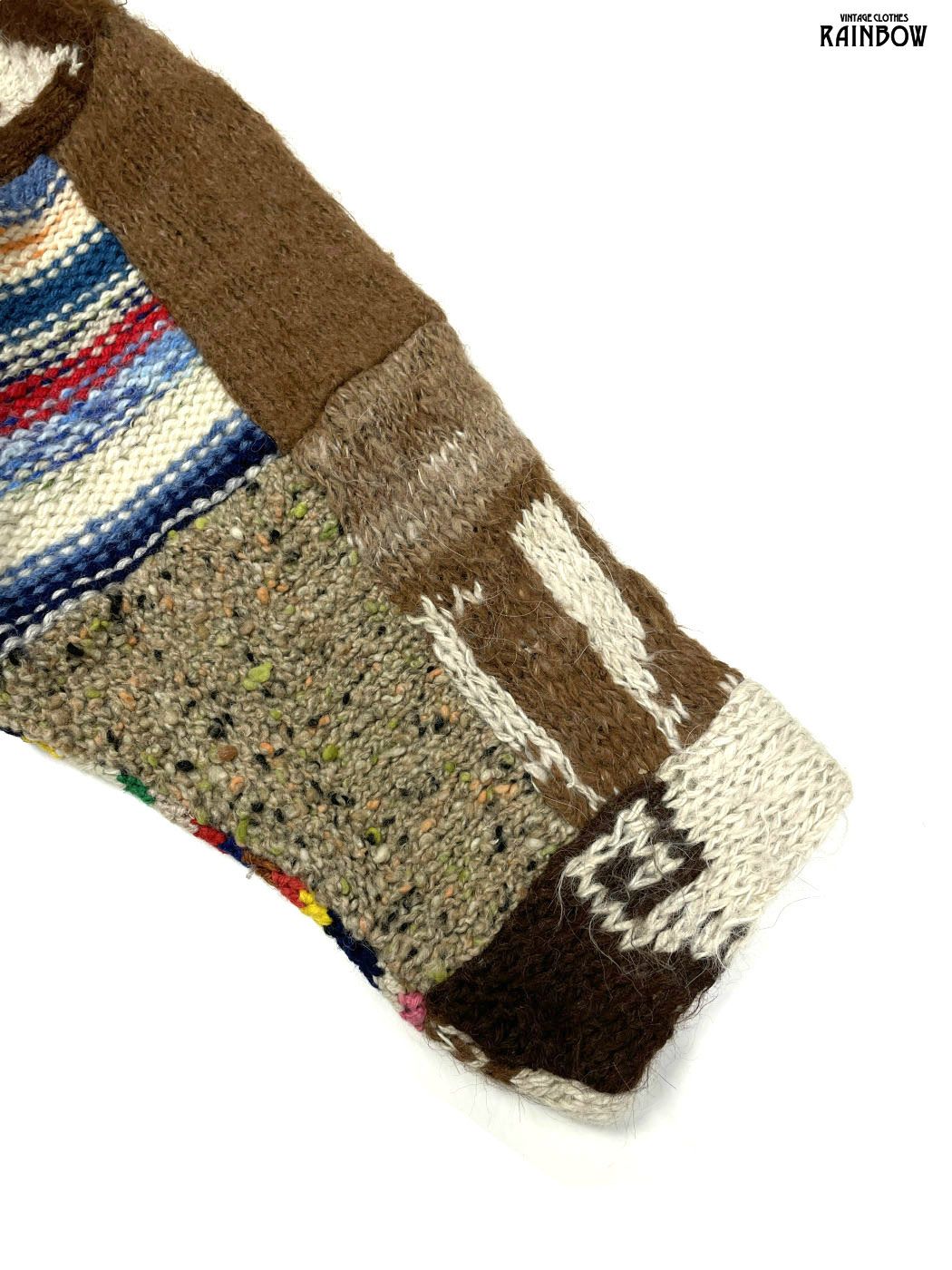 #ニット #セーター #ロングスリーブ #茶 #総柄 #イタリア製 #パッチワーク風 #ウール #柄セーター