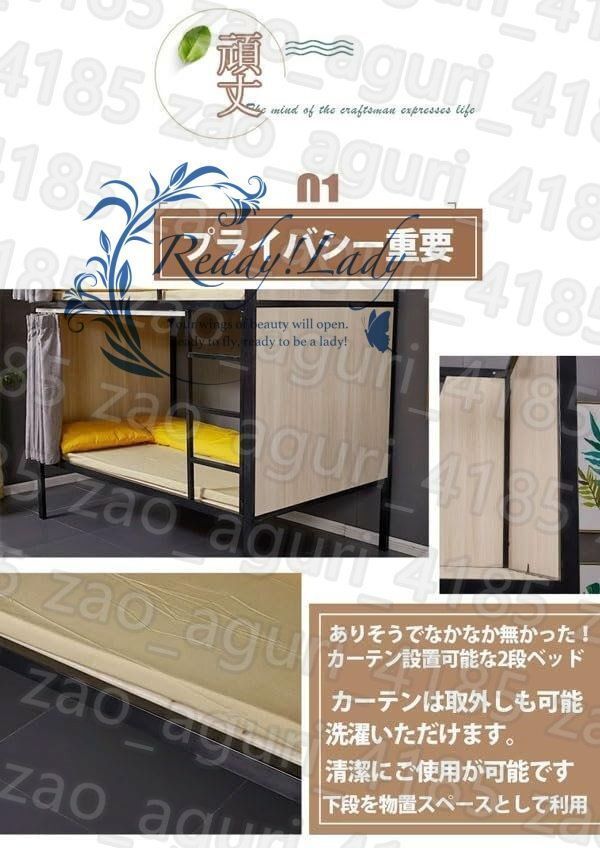 2段ベッド 大人用 業務用 カーテン付き 学生寮 社宅 200 x 100 220 cm