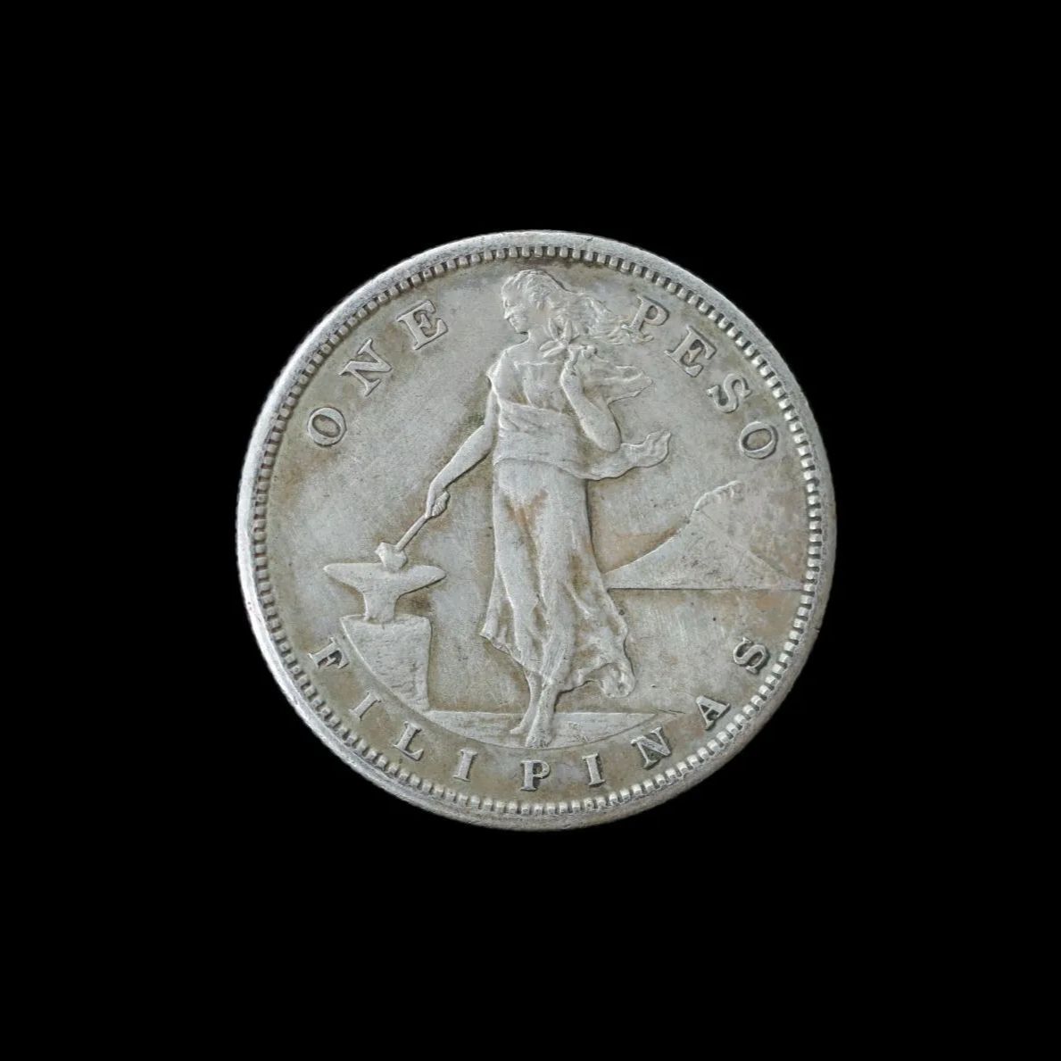 この1ペソ銀貨は、アメリカ統治下のフィリピンで発行された大型銀貨で、