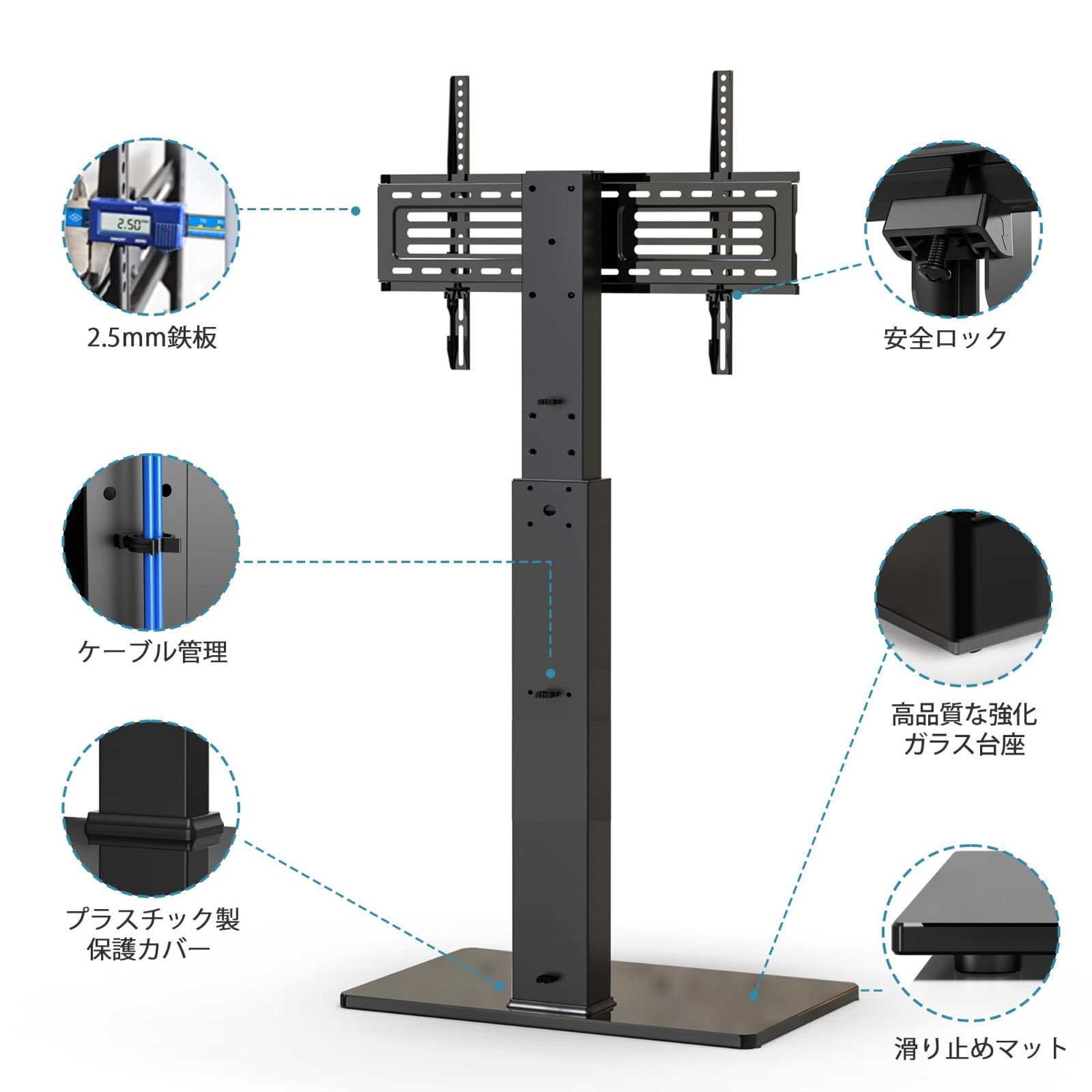 数量 1段式 ブラック ラック回転 高さ調節 壁寄せテレビスタンド テレビスタンド FITUEYES