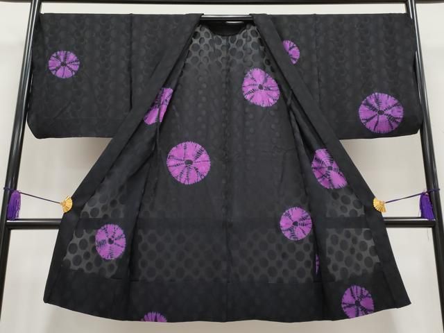 平和屋着物 上 スリーシーズン 春夏秋 塵除け 長羽織 絞り 丸文 黒地 s 5