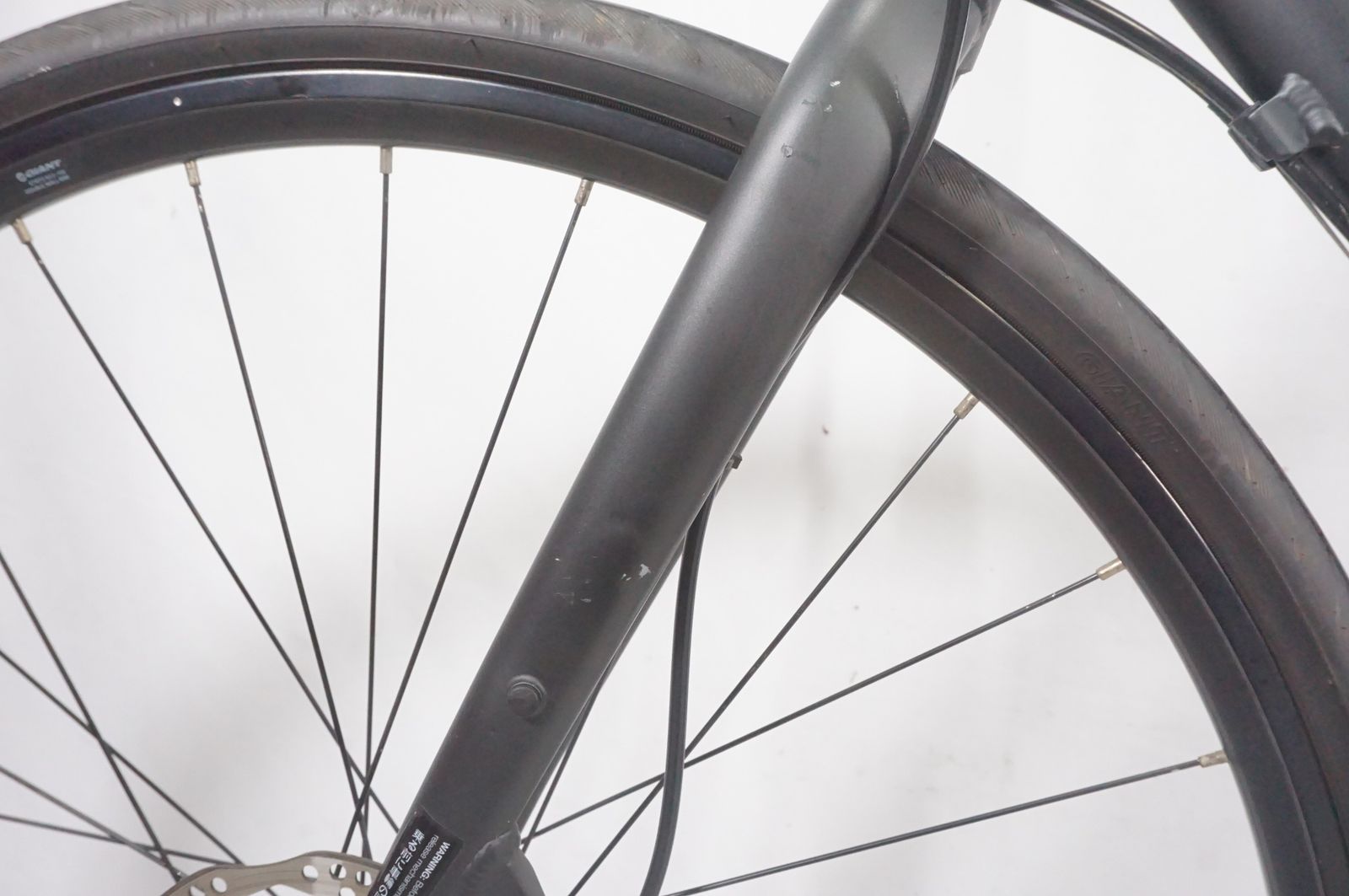 フロントフォークのヘッドチューブ付近にワイヤーのスレがございます。