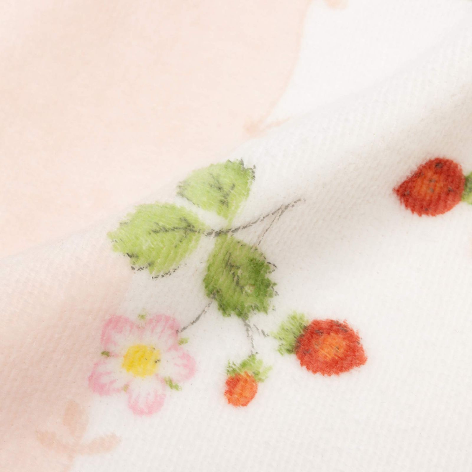 人気のワイルドストロベリー柄をストライプ調にデザイン。全体に動きを出すことで、夏らしい爽やかな印象のタオルケットに仕上げました。