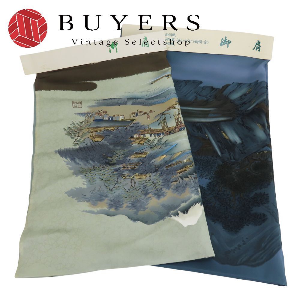 和装小物 御肩裏地 キングサイズ 正絹 ポリエステル マルチ グリーン系 ブルー系 セット 風景画 羽織裏 和装 呉服 和服 きもの メンズ 男性