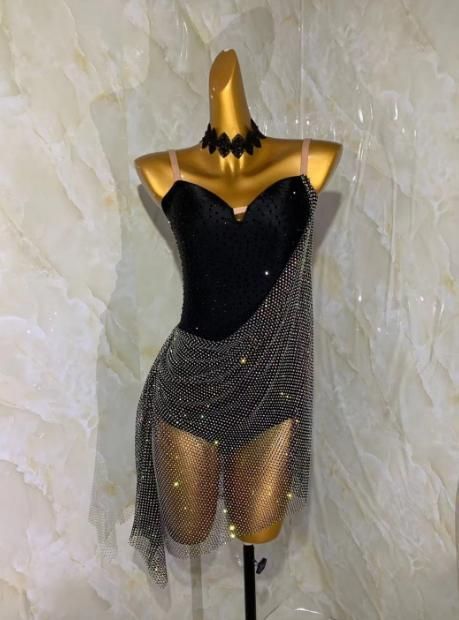 ラテンドレス ラテンワンピース ダンス衣装 ブラック オールストーン S M L