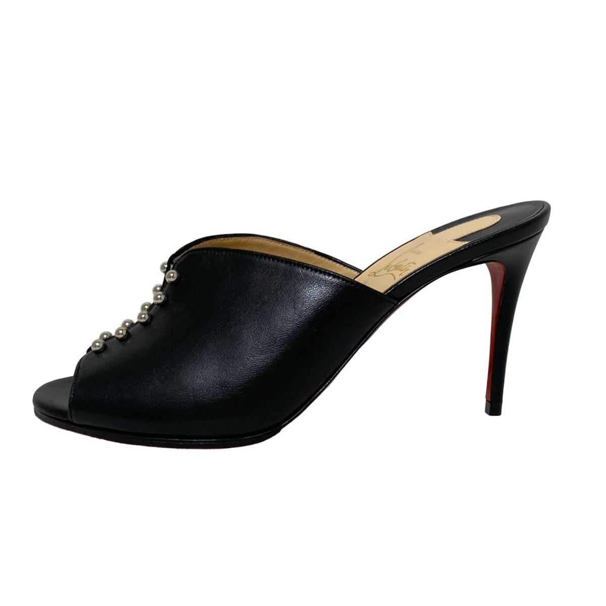 クリスチャンルブタン ミュール 371 2 レディース - 黒×クリア アウトソール張替済 レザー