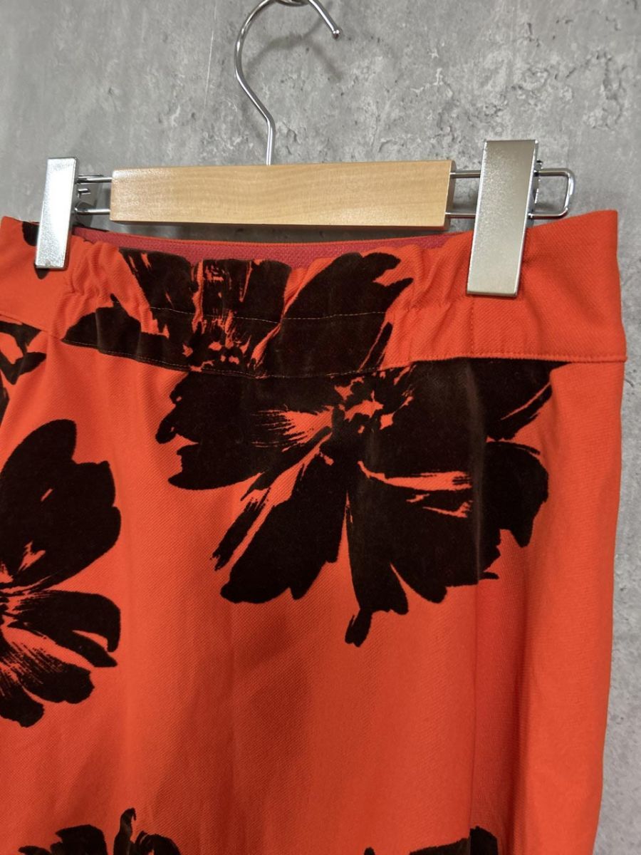 ドールアップウップス フロッキーフラワープリント ロング スカート size 38 オレンジ レディース