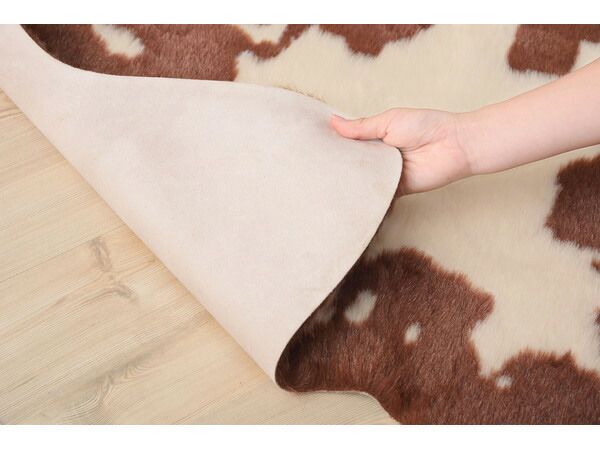 フェイクファーを使用した、カウ柄のラグマット。
