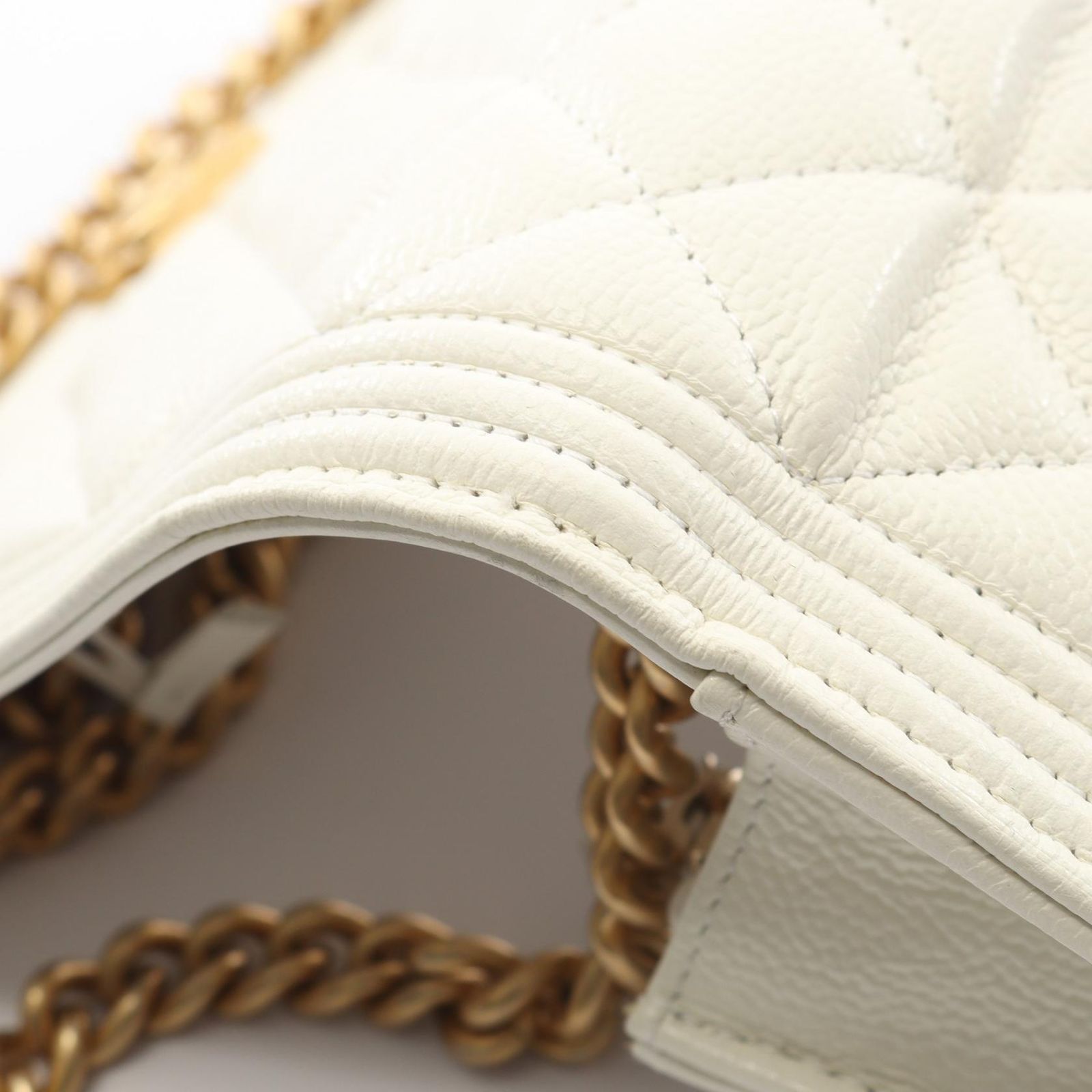 シャネル CHANEL ショルダーバッグ ボーイシャネル マトラッセ ホワイト レザー チェーンウォレット レディース B