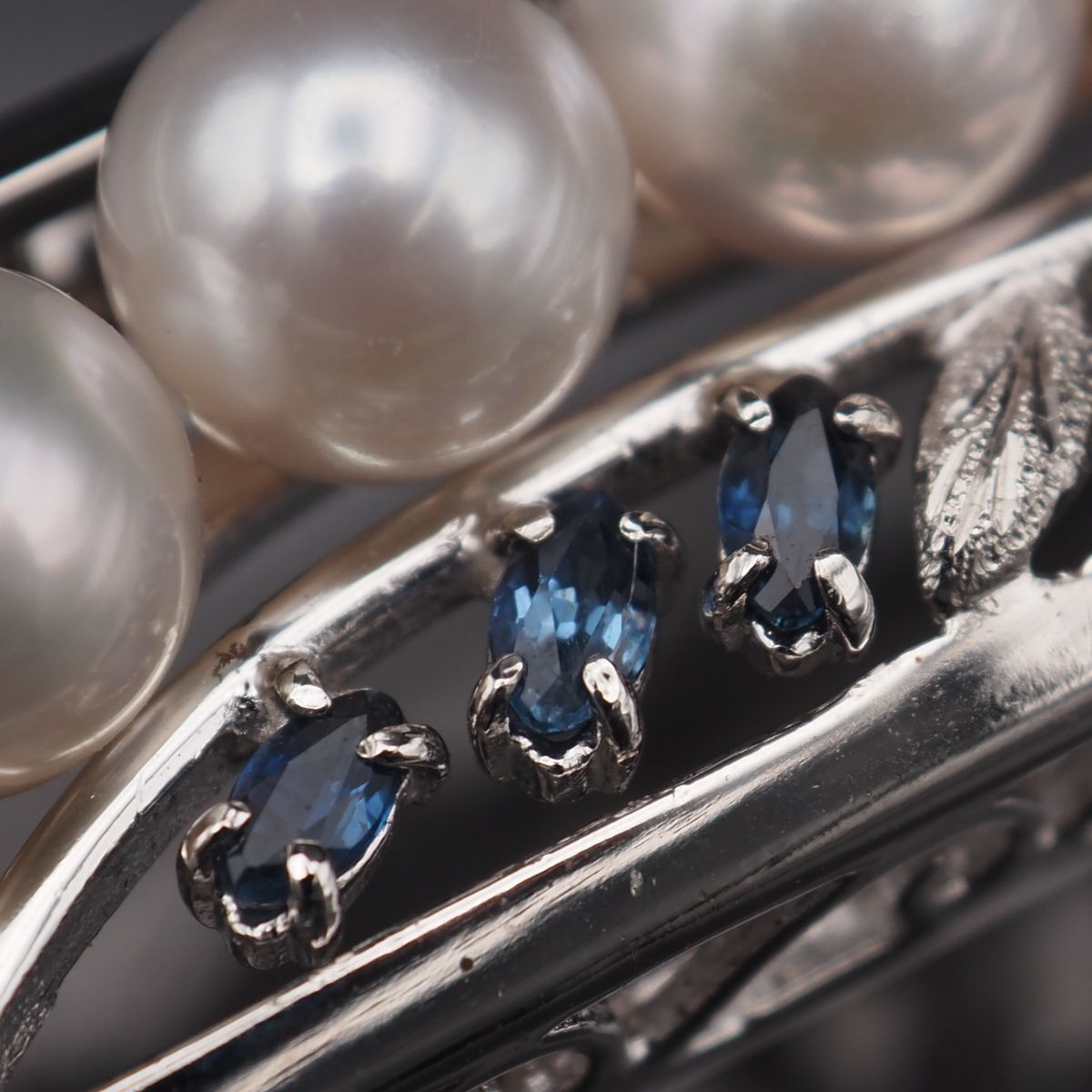 G 750 本真珠 6.8-7.2mm珠 パール サファイア ブルースピネル 帯留め リーフ デザイン シルバー 和装小物 誕生石