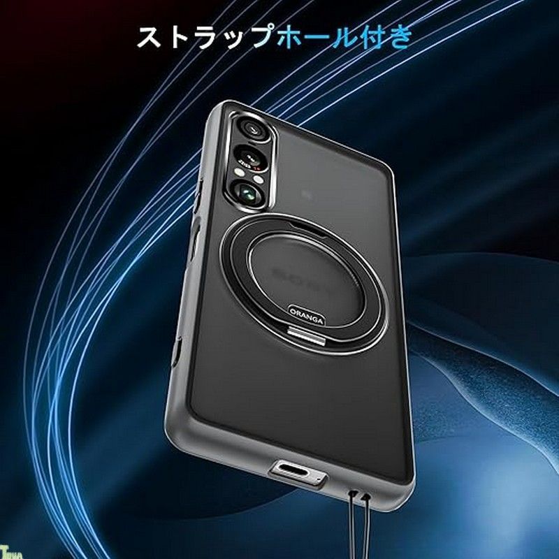 改善型 ORANGA SONY Xperia 1 VII ケース 360度回転できるスタンド 一体 縦横両対応 マグネット搭載 MagSafe対応 ストラップホール付き 薄型 半透明 指紋防止 米軍MIL規格耐衝撃 リング マ