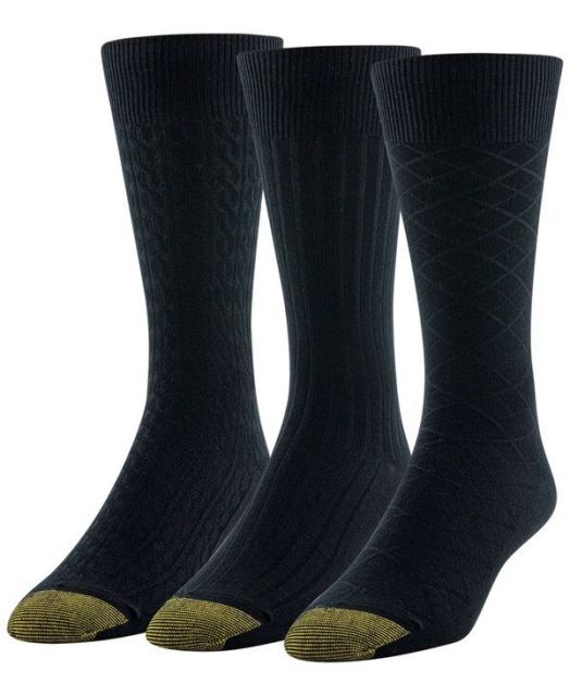 ゴールドトゥ メンズ 靴下 アンダーウェア Men s 3-Pack Felix Texture Reinforced Toe Crew Socks Black