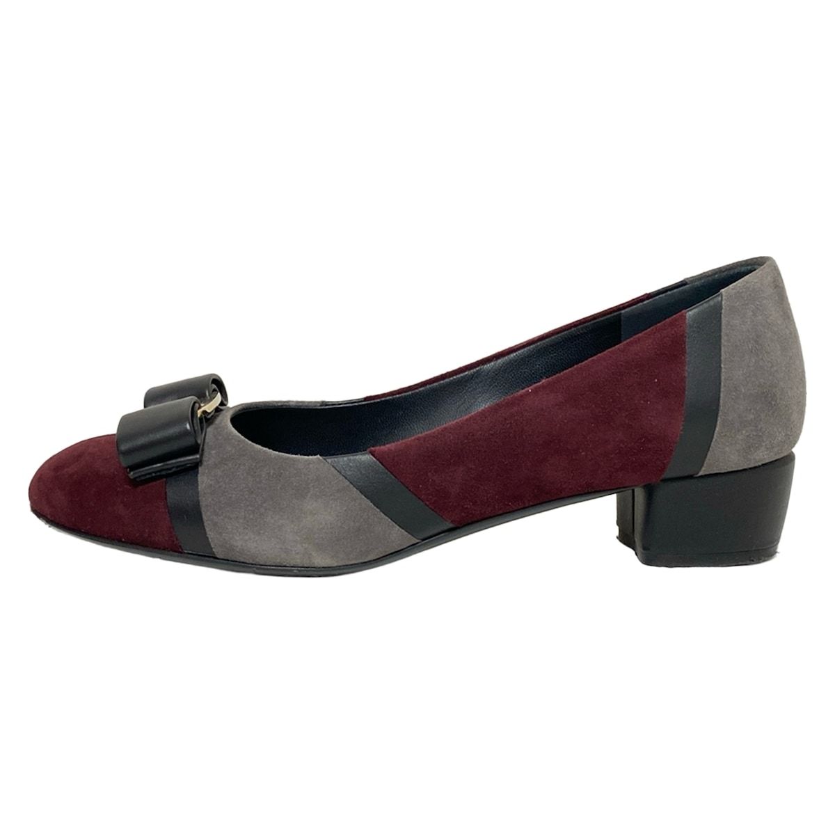 SalvatoreFerragamo サルバトーレフェラガモ パンプス 6 D レディース - ボルドー×ダークグレー×黒 ヴァラ レザー
