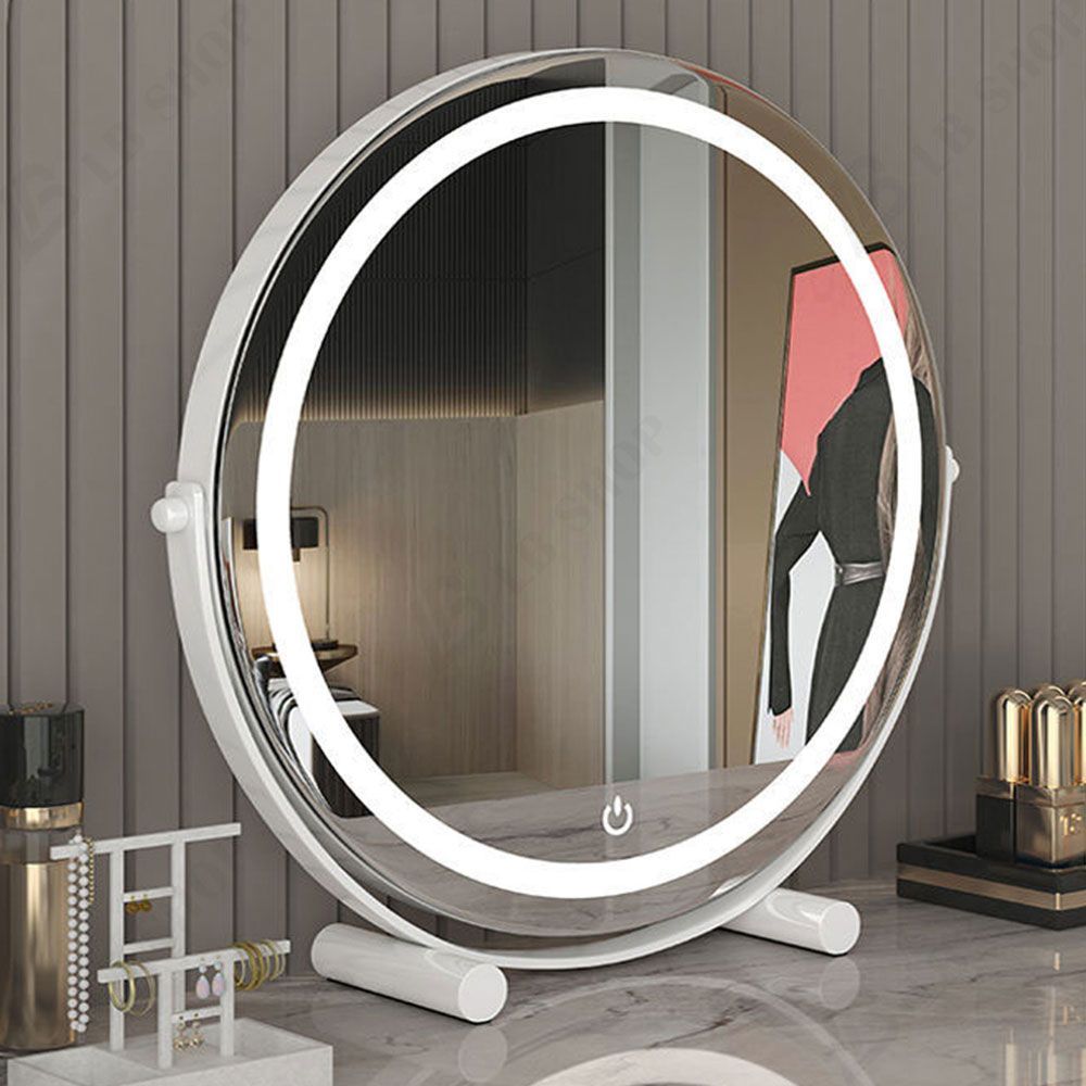 女優ミラー 直径 50 cm 卓上ミラー ライト付き 大きい 丸型 360°回転 角度調整 三色調光 鏡 led 化粧鏡 メイク アップ ミラー 充電式 おしゃれ 贈り物 新居