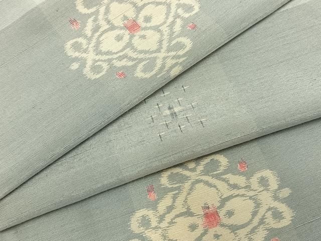 平和屋着物 本場越後伝承紬 単衣 吉祥花文 反端付き 正絹 fy