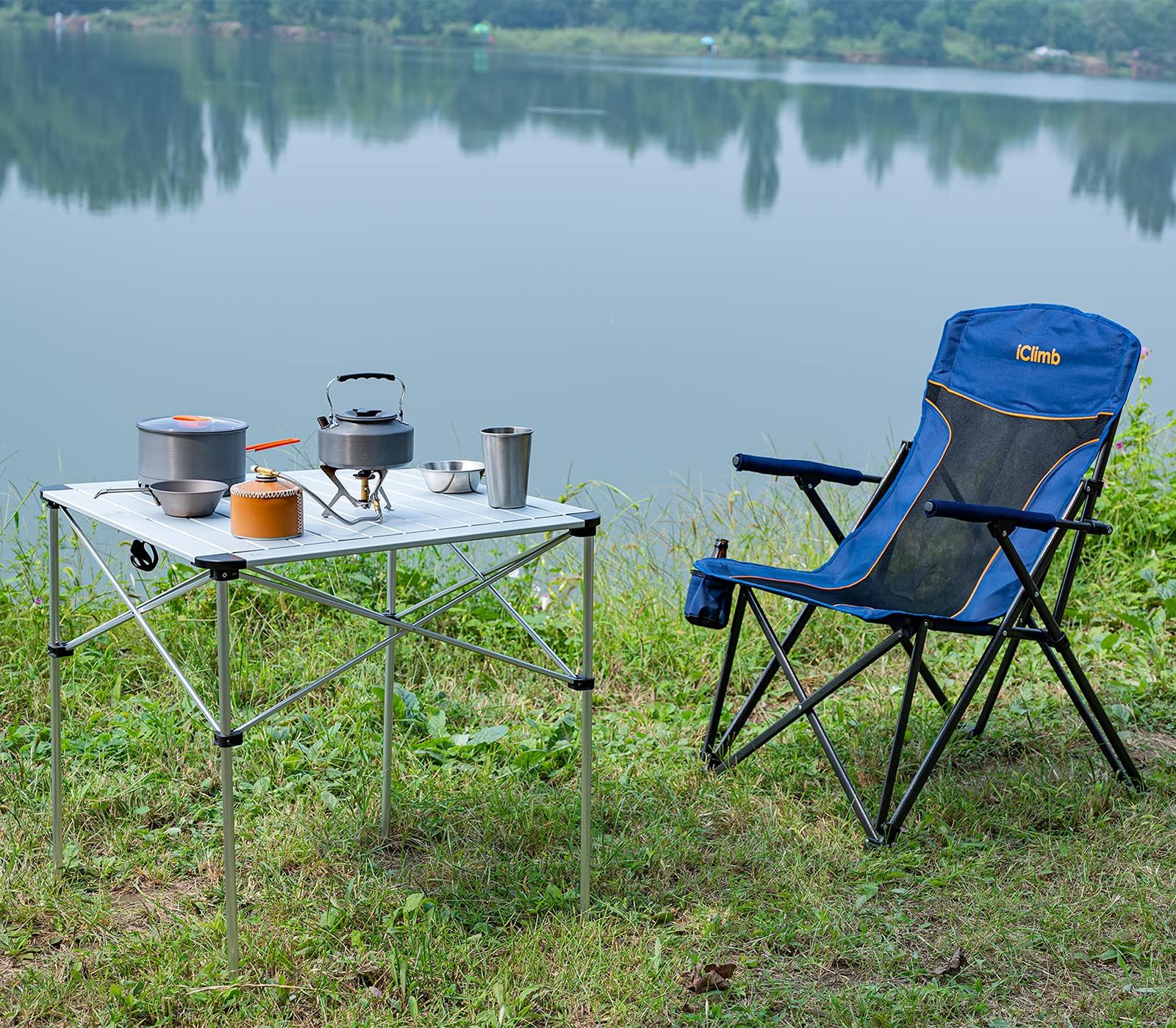 安定 アルミ製 ロールテーブル キャンプテーブル 机 折りたたみ コンパクト 軽量 アウトドアテーブル 耐荷重80 kg 耐熱 防酸化処理 アィクライム つや消し 収納袋付き サイズ iClimb S M L cm